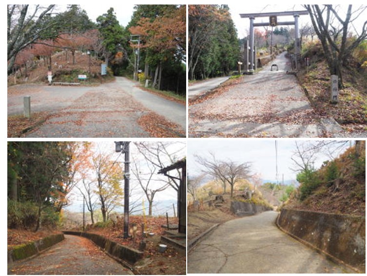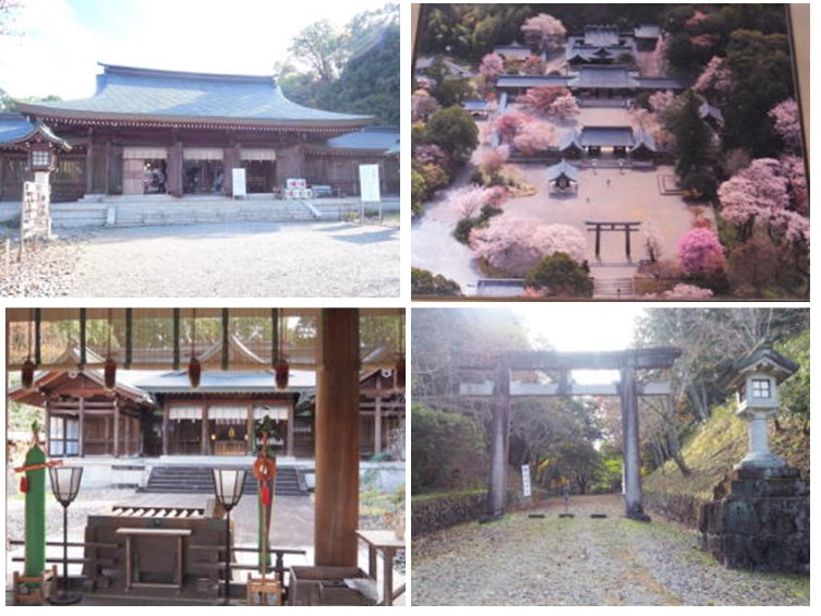上左:吉野神宮拝殿 上右:上からの写真(資料から借用) 下左:本殿 下右:大鳥居