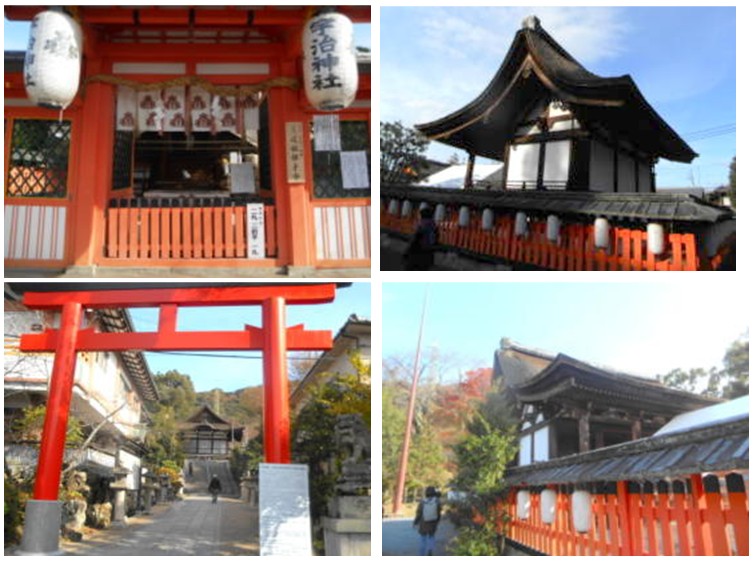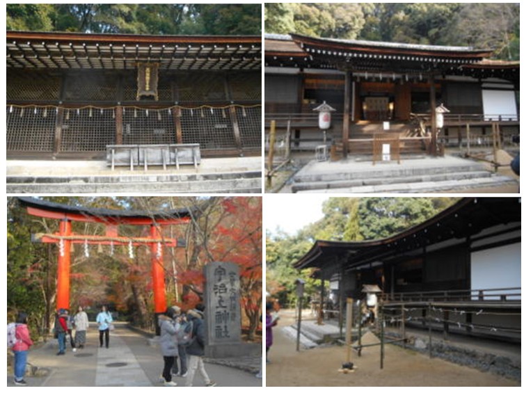 宇治上神社 上左:本殿 右:拝殿 下左:さわらびの道大鳥居