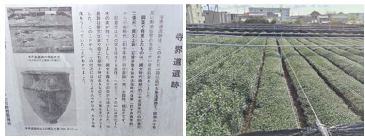 途中で寺界道遺跡の看板があり寄るが、住宅ばかりで遺跡の痕跡はない。寺界道遺跡は、宇治市五ヶ庄、野添、大林一帯に広がる縄文時代から奈良時代にかけて展開する集落遺跡。